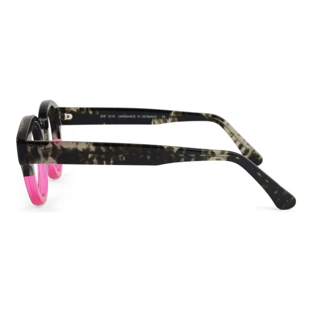 We know you love a two-tone German frame (same) and this one's a goodie. SEE 1254 is brought to you by one of our most-loved Deutschland artisans, pairing a classic round shape with interesting torts and bright color pops.