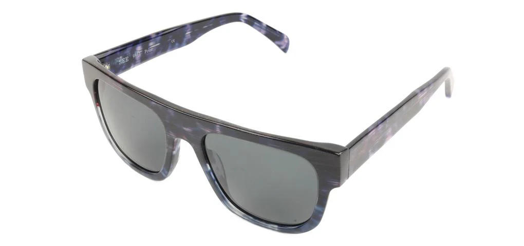 Classic men’s shape with polarized lenses and 5 barrel hinges. Interesting patterned acetate fading into Havana (except for the crystal which happens to be my personal favorite with the patterned acetate on the temples).